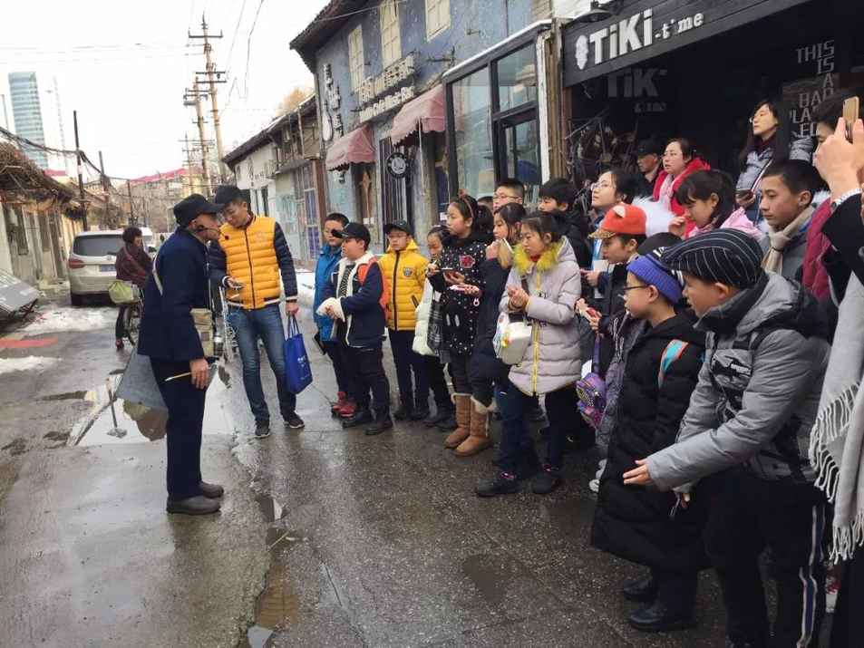 “所城里准确的叫法是‘奇山所城’,是一座建于1398年的卫所,为抗击倭寇而建。当时解放路原先叫东河,西南河原来叫西河,南面有奇山,北面有烽火台,这里位于中轴线上的有利位置,成就了它作为“奇山守御千户所”的历史地位,而通到烽火台这条线,因为跑马传递信号,走的人多了,慢慢有了后来的‘朝阳街’……直到1664年,清政府将此处奇山所城取消,当兵的解甲归田,这里也转为民用,人慢慢多了,便逐渐向外发展,形成了周边上夼村、大海阳村、小海阳村、所城东村、仓浦村等13个村。也慢慢形成了烟台的雏形。”吴老声情并茂的讲解着,学生们认真地拿出自己的笔记本做着笔记,而他们心中更是对前辈们选址的真知灼见充满了敬意。