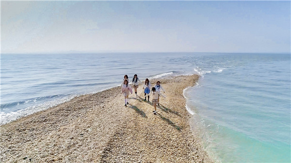 网红打卡点--长山尾3月的长岛,海风习习,松涛阵阵,草长莺飞。女神们登岛后的第一站,是长岛林海景区。在景区也是长岛的最南端,是一条蜿蜒伸展入海、素有“通往亚特兰蒂斯之路”网红美称的的海岬--长山尾,这里也是黄海、渤海的交汇之处,站在长山尾的石滩上,眼前是碧波涟漪中泾渭分明的黄渤海分界线,左右两边是向你缓缓汇聚的轻柔海浪,闭上眼睛深吸一口清沁的林间海风,耳边尽是浪花轻拍石滩的舒缓曲调。美景醉人,美人映景,青春靓丽的女大学生们,也不禁惊叹于大自然的造物,在这天涯海角间,她们展示出了婀娜的身姿,与长岛的美景共舞。她们置身于林海岸边,品尝甜品,畅谈理想与未来......