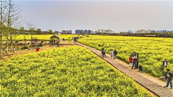 在黄金花海里轻舞霓裳,记下春天里最美丽的时刻。园区专门修造了木栈道、赏花亭供游客休憩、拍照、游览,人在花中走,犹在画中游。