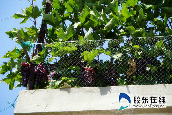 近日,笔者和好友一行数人,来到了烟台开发区潮水二村姜瑞吉先生家,观赏农家小院中独特的立体葡萄园。