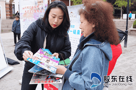 长岛旅游集团市场部程琳向青岛市民朋友介绍长岛旅游线路并赠送旅游景区门票;龙口南山景区工作人员在现场向青岛市民发放南山旅游景区开光小玉坠;张裕卡斯特酒庄工作人员为青岛游客赠送景区精美纪念品(葡萄橡木塞)、崑龙温泉营销总监李伟强向青岛市民发放安德利的果汁,果胶饮品;牟氏庄园营销部王越为青岛市民送上庄园民俗花饽饽;莱阳白垩纪国家地质公园工作人员向青岛市民朋友介绍研学线路并赠送景区门票以及恐龙小玩偶。