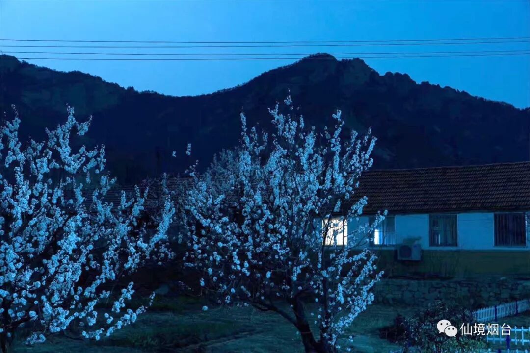 夜晚,月光洒下,将军谷笼罩在一片银白里,杏花染上月色,又是另外一番风味。摄影:小草