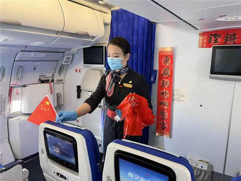 “踏入东航客舱,就像提前回到了祖国的怀抱”。为了让女足姑娘们“补过”好春节,东航乘务组在客舱里贴上家人看球时题写的福字和春联,营造浓厚的节日氛围。自接到包机任务后,东航及时制定了周密的保障计划,快速完成航权申请。东航新德里营业部在孟买机场特别设置专属快速值机柜台、安排专门候机区,安排专人引导全流程登机服务及防疫信息的填报。东航航班承载全国人民的期盼与喜悦,迎接亚洲女足冠军带着奖杯胜利归来。